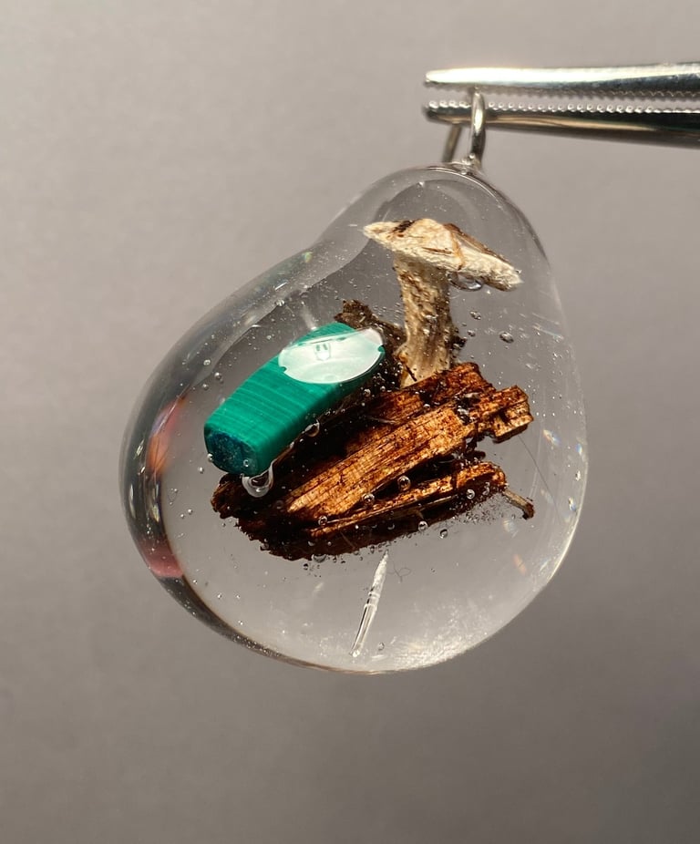 Pick from available mushrooms, mosses, bark, pigments, and finishes to create a one-of-a-kind pendant or charm that feels like your own little forest story.
